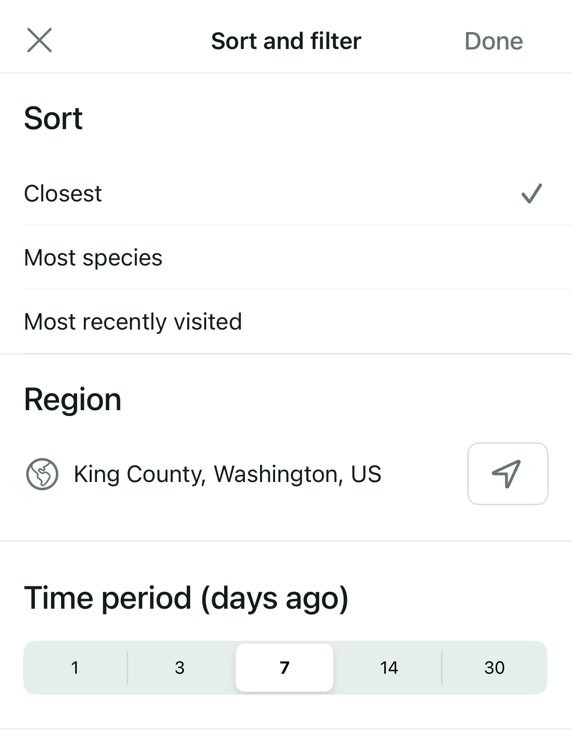 - “Last X days” via eBird’s recent endpoint by using a days-back parameter and server-side filters.