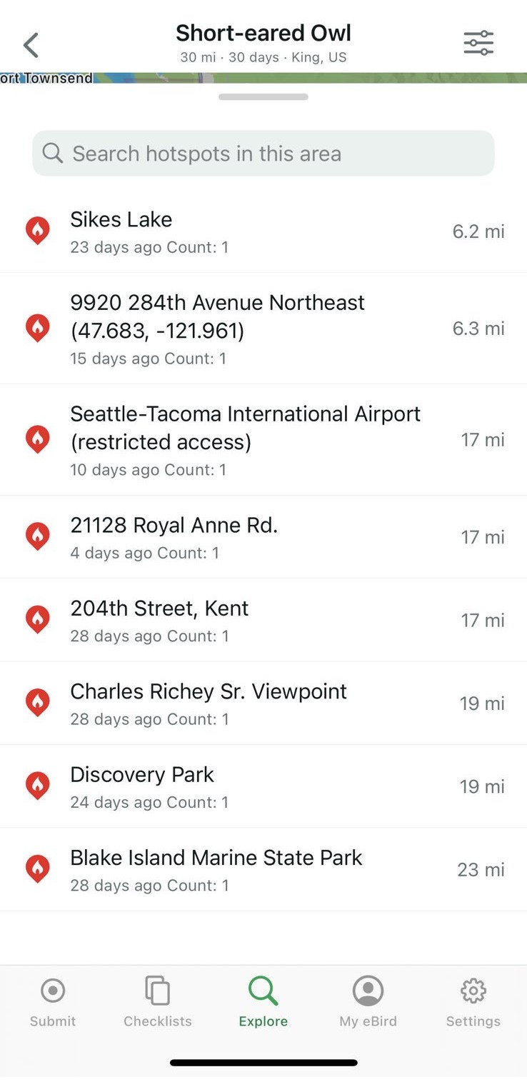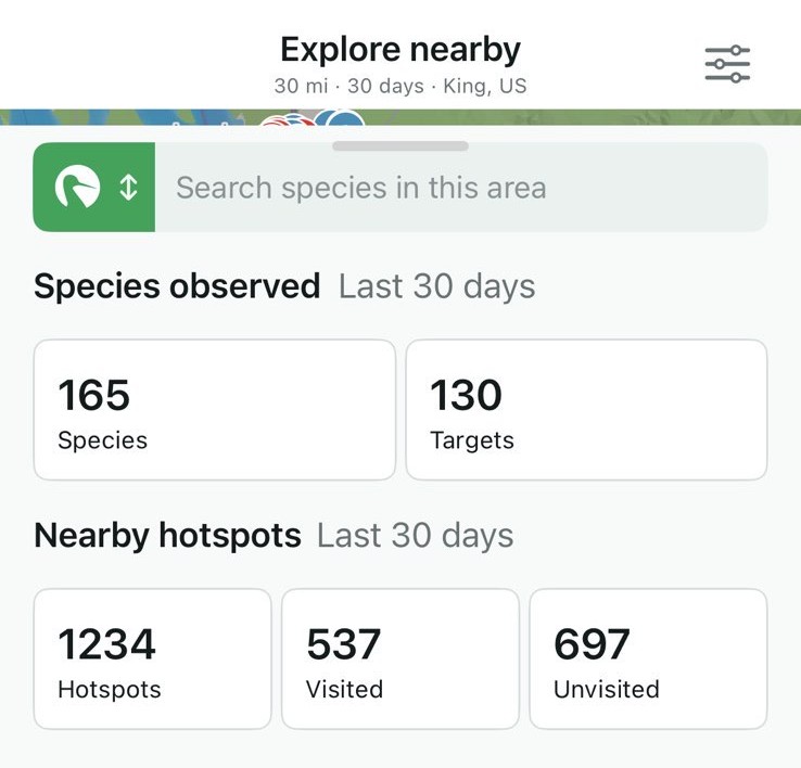 You open your trusty Merlin app. You click Explore. It shows all species near your location.